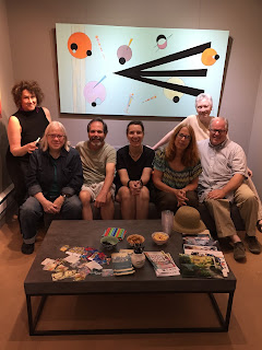 But most of all, the process of doing these is one way to control chaos, to contain the political outrages that color my world view from the minute I wake up until I go to sleep. I can't change the broader picture by myself, but I CAN control the canvas in front of me, and emerge with an interplay of shapes and colors that make me feel calm, and that viewers respond to.